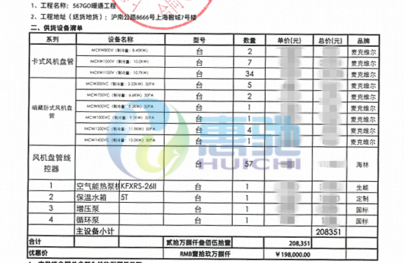 項目內容:麥克維爾風機盤管末端安裝
