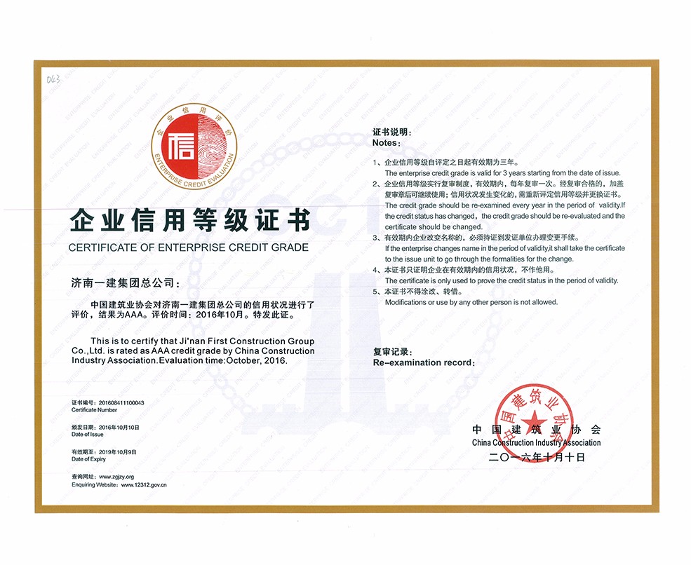 全國建筑業AAA級信用企業