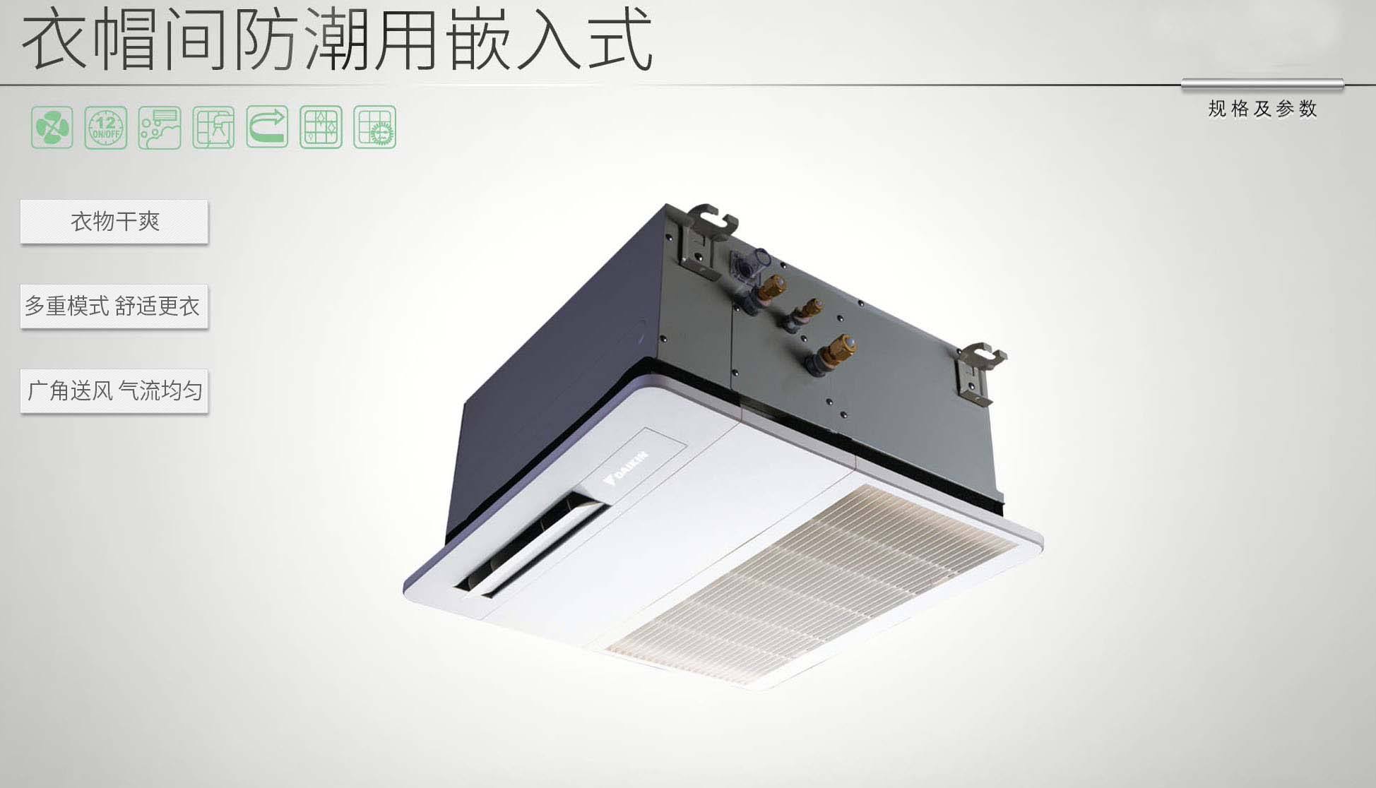 大金衣帽間專用空調(diào),智能檢測(cè),濕度過(guò)大時(shí)自動(dòng)開啟除濕模式,運(yùn)用魔力三管技術(shù),