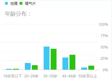 百度大數(shù)據(jù)顯示搜索地暖和暖氣片關鍵詞的用戶畫像中,30-30歲人群居多,40-49歲次之。可見,人到中青年事業(yè)穩(wěn)定,更關注于生活的品質和家人的健康。噓寒問暖,不如為家人裝套取暖系統(tǒng)。