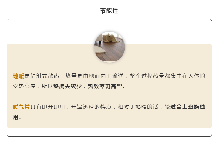 以上就是我們暖氣片和地暖進行的對比,相信大家對兩種取暖方式也有了一個基礎的認識,根據(jù)兩種不同的取暖方式,我們可以進行選擇,如果家中沒有什么人,我們是上班族的話可以選擇暖氣片進行取暖,這樣加熱效果比較快,如果家中經常有人可以選擇安裝地暖!